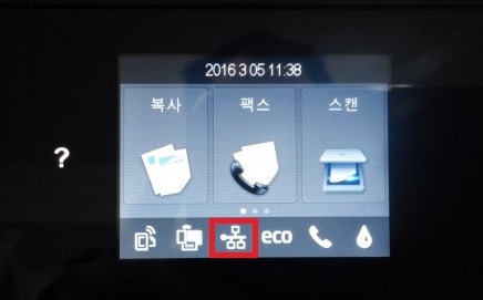 (복합기 하단 왼쪽에서 3번재 네트웍 그림 터치)
