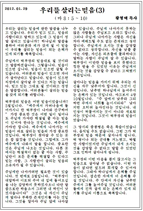 답댓글 작성자believer 작성자 본인 여부 작성자 작성시간 12.02.04 쪽지 보냈습니다. 이제는 숨길 것도 없습니다. 학교 당국이 다시 불러주셨으니 어떤 외풍이 불어도 상관없습니다. 2월 말까지는 주일 예배는 그곳입니다.