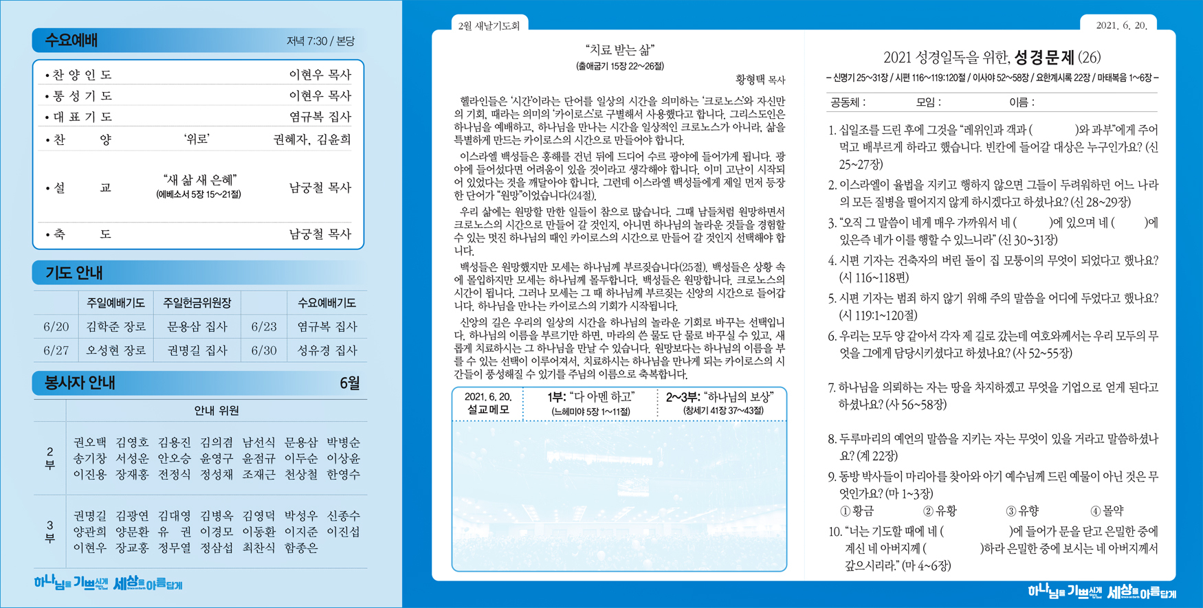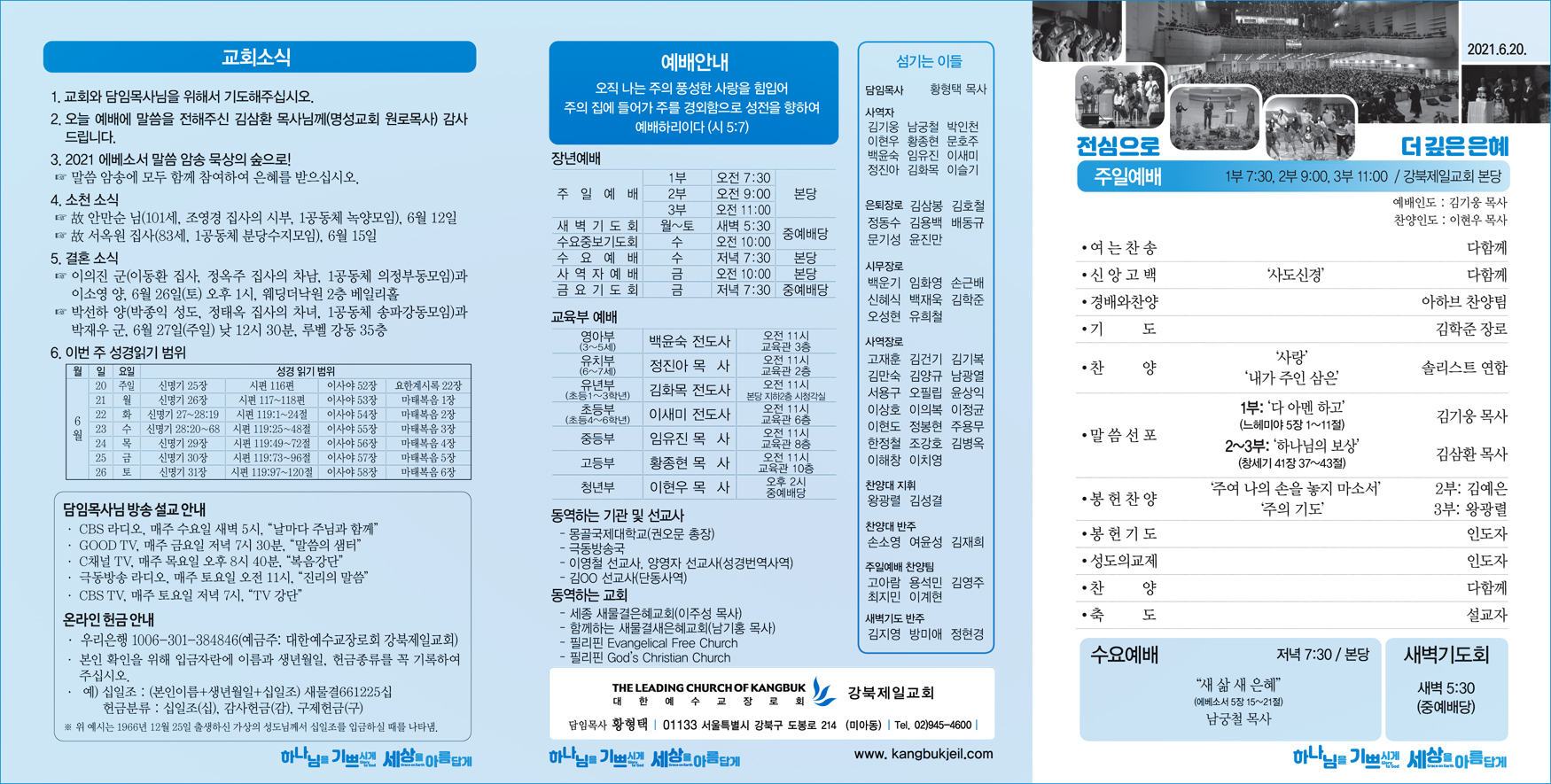 [주보] 2021년 6월 20일 작성자목회실|작성시간21.06.18|조회수60 목록 댓글 0 글자크기 작게가 글자크기 크게가 다음검색 현재 게시글 추가 기능 열기 북마크 공유하기 신고 센터로 신고 댓글 댓글 0 댓글쓰기 답글쓰기 댓글 리스트