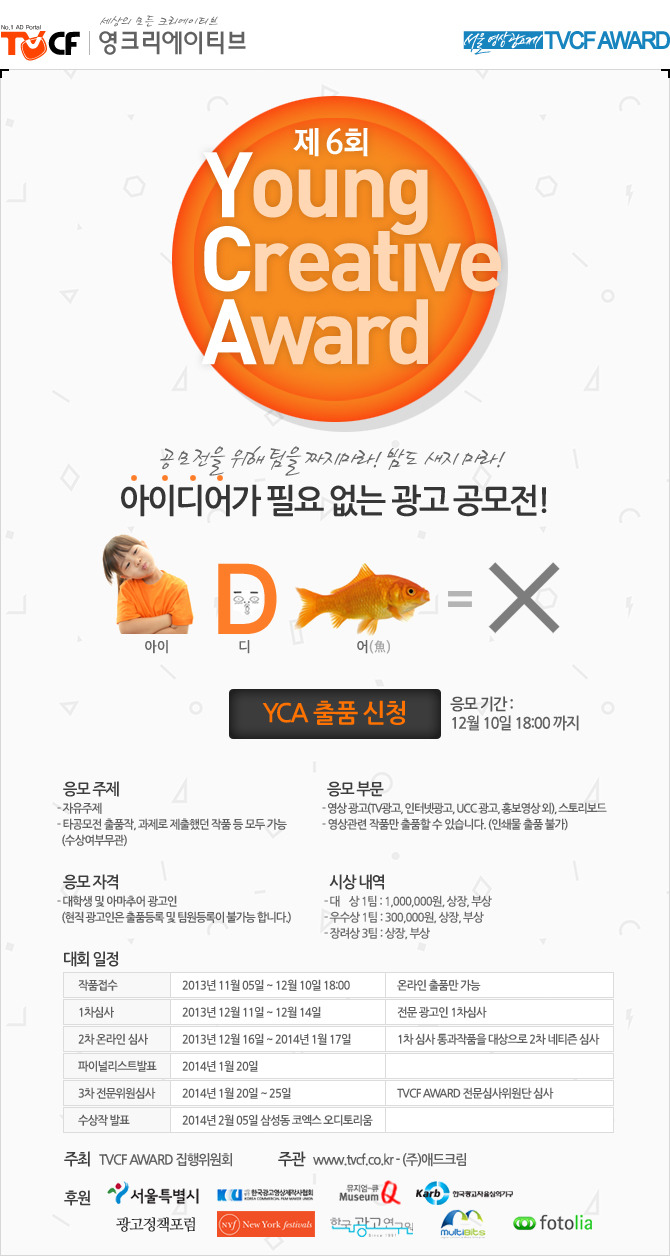 [광.고.쟁.이.시.즌.2] TVCF Young Creative Award 개최!! 작성자광고쟁이운영진|작성시간13.11.06|조회수299 목록 댓글 9 글자크기 작게가 글자크기 크게가 다음검색 현재 게시글 추가 기능 열기 북마크 공유하기 신고 센터로 신고 댓글 댓글 9 댓글쓰기 답글쓰기 댓글 리스트 삭제된 댓글입니다. 작성자뉴라인 | 작성시간 13.11.26 Young Creative Award 참가하려고 합니다:) 답댓글 작성자얌씨 | 작성시간 13.11.27 좋은결과 있길 바랍니다 답댓글 작성자뉴라인 | 작성시간 13.12.01 얌씨 감사합니다:) 작성자아가페love | 작성시간 13.11.28 이거랑 애드워 둘중에 나갈까하는데 고민이네요 ㅠㅠ 댓글 전체보기