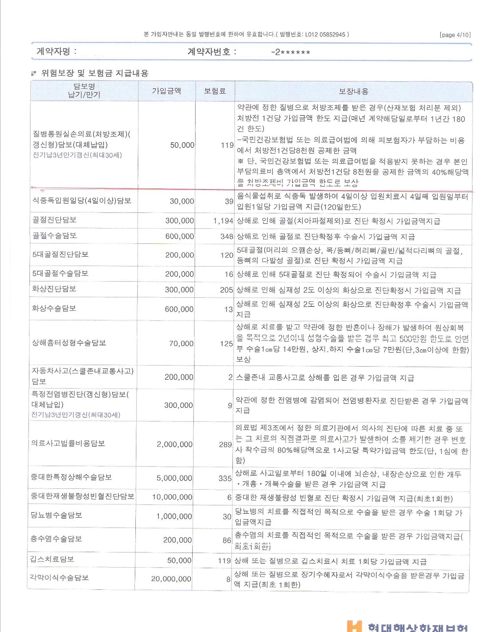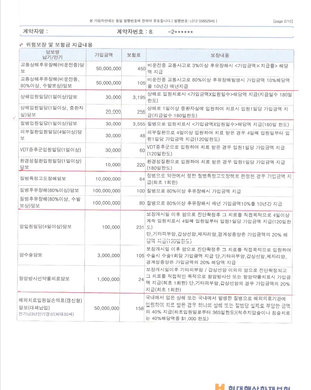 대신에 교통상해후유장해(비운전중)특약 5,000만원을 1억으로 상향합니다.