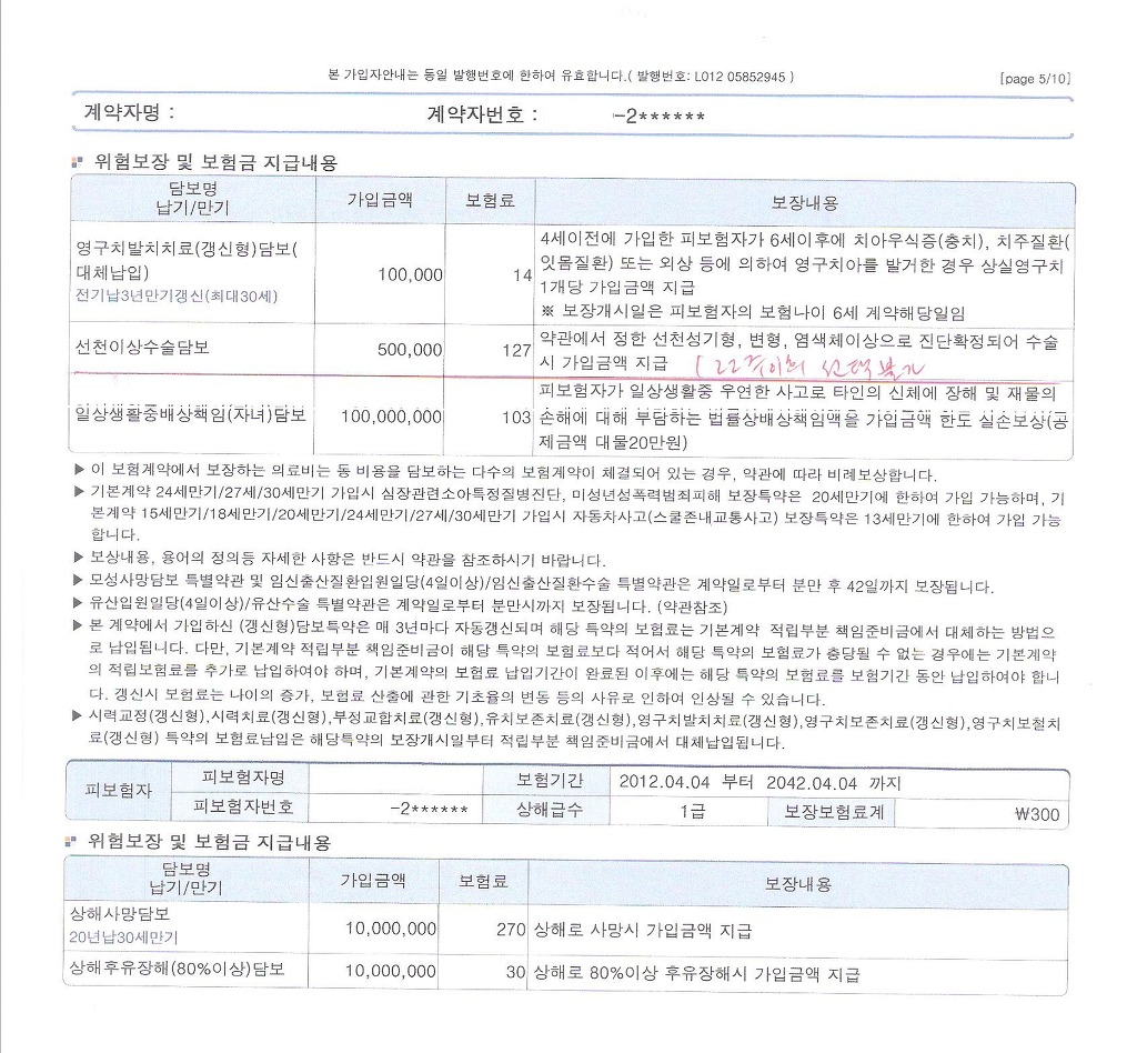 * B안은 보험료 부담을 줄이기 위해 특약을 약간 낮춥니다.