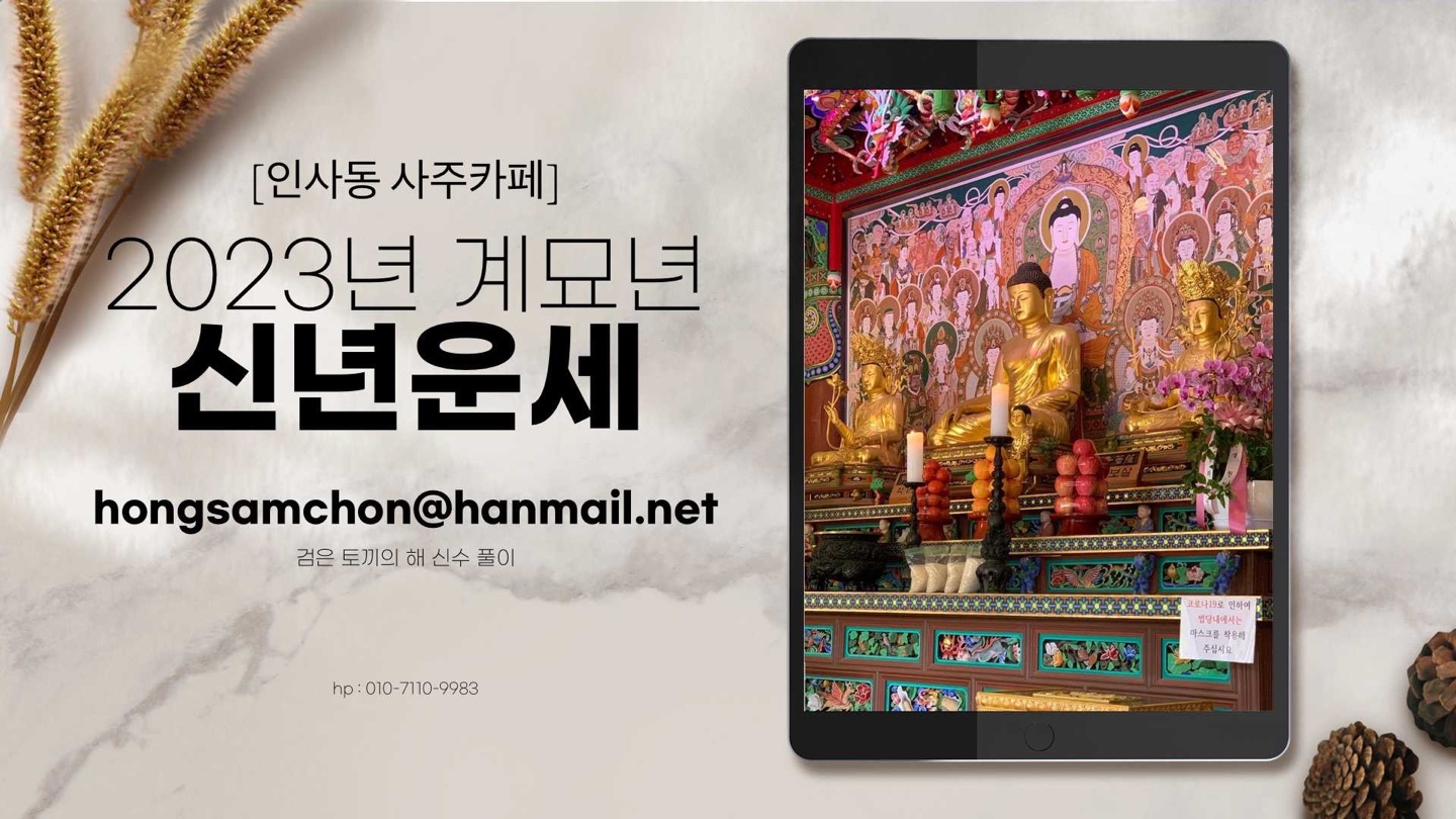 [인사동 사주카페] 입니다! 2023년 계묘년(癸卯年) 내년운세 및 가장 궁금한 질문 문의사항 위주로 비대면 ‘이메일상담’ 진행합니다!
