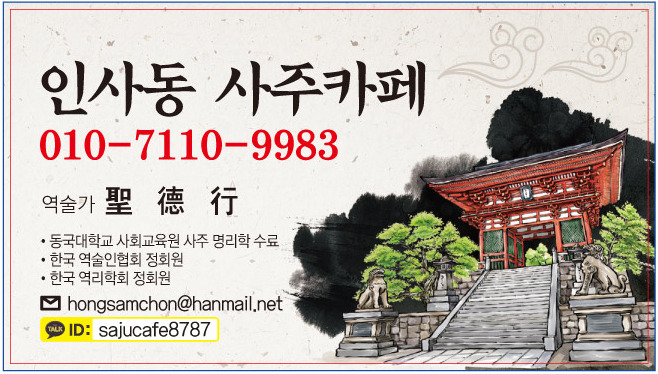 인사동 사주카페는 17년 이상의 경험을 가진 聖德行 선생님이 운영하는 사주 전문 카페입니다. 선생님은 동국대학교 사회교육원 명리학 과정을 수료하고 한국 역술인협회 및 한국 역리학회 정회원으로 활동하며, 타로 심리상담사 1급 & 풍수 인테리어 지도사 1급 자격증도 보유하고 있습니다.