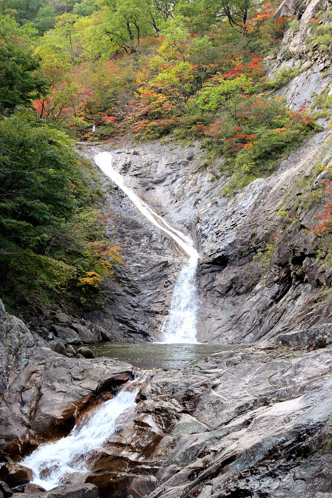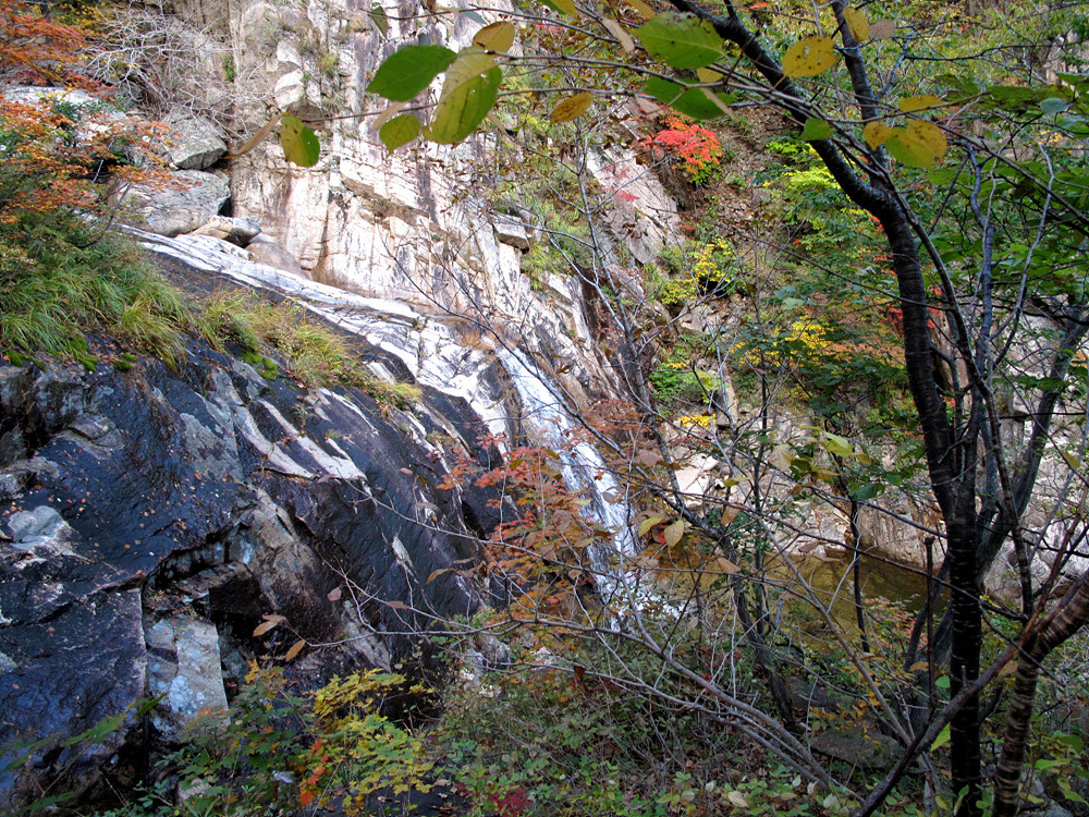 #별따소 들머리:저 폭포가 보이면 좌측 작은골짝 위 50미터 지점에서 첫마디 시작