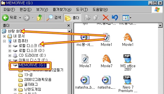 4. 복사하고자 하는 폴더나 파일을 바탕화면으로 드래그하면 복사가 됩니다.