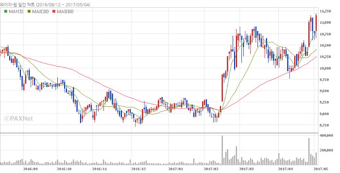 앞으로 글로벌 경기 흐름이 더 좋아질 것으로 예상하고 있고 와이지원의 주가 또한 바닥에서 이제 올라온 만큼 더 상승할 수 있으리라 봅니다.