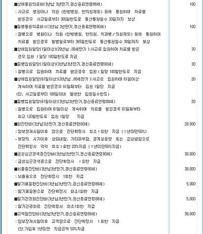 그리고 급성심근경색증과 뇌졸중이 멕시멈이네요.(최고한도/3천)