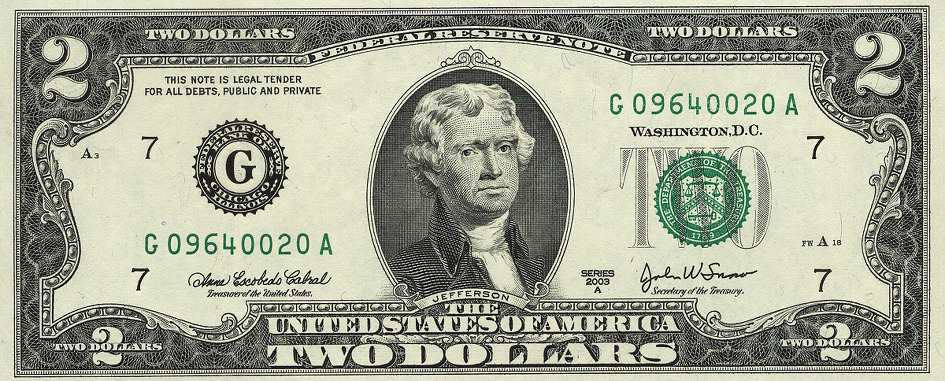 흉부와 놀부의 제비처럼 행운을 가져다 줄 행운의 2달러.