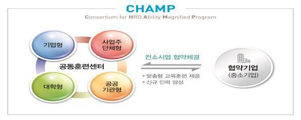 □ (개요) 기업‧사업주단체 등이 다수 중소기업과 컨소시엄을 구성하여 재직자 및 채용예정자 공동훈련을 실시할 수 있도록 인프라 비용 지원