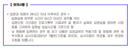 ② 피보험자가 병원 또는 의원을 이전하여 입원한 경우에도 동일한 상해의 치료를 직접 목 적으로 입원한 경우에는 1회 입원으로 보아 각 입원일수를 더합니다.