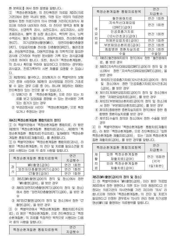 143. 특정순환계질환 통합치료비 (연간 2,000만원 한도)보장 특별약관