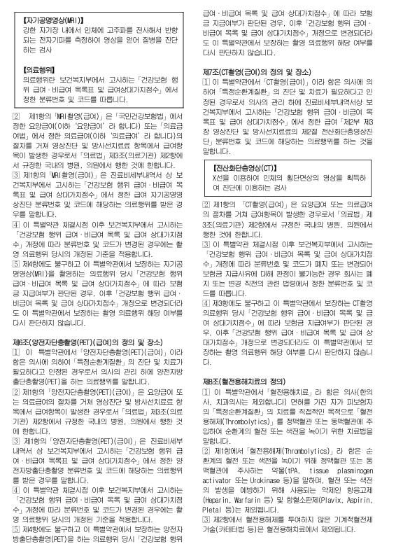 진료행위코드는「건강보험 행위 급여·비급여 목록표 및 급여 상대가치점수(보건복지부 고시)」에서 정한 처치 및 수술료, 검사료, 방사선 치료 등을 포함한 코드를 말합니다.