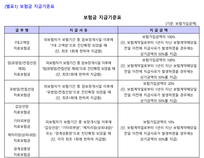 6. 7대고액암 치료보험금 지급사유가 발생한 경우 암(유방암/전립선암 제외) 치료보험금을 더하여 지급합니다. 다만, 7대고액암 치료보험금 지급사유가 발생하기 전에 암(유방암/전립선암 제외) 치료보험금 지급사유가 발생하였을 경우 암(유방암/전립선암 제외) 치료보험금을 더하여 지급하지 않습니다.