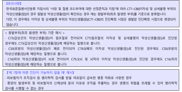 ⑧ 제 7항에 따른 진단이 가능하지 않을 때에는 피보험자가 암, 기타피부암 및 갑상선암으로 진단 또는 치료를 받았음을 입증할 만한 문서화된 기록 또는 증거가 있어야 합니다.