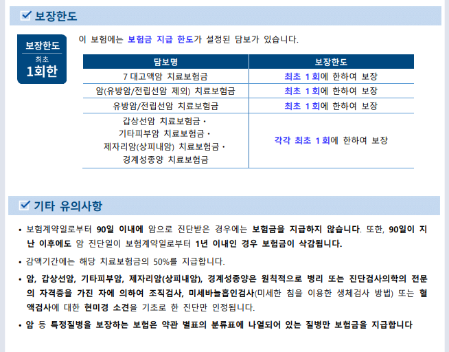 ⑧ 제 7항에 따른 진단이 가능하지 않을 때에는 피보험자가 암, 기타피부암 및 갑상선암으로 진단 또는 치료를 받았음을 입증할 만한 문서화된 기록 또는 증거가 있어야 합니다.