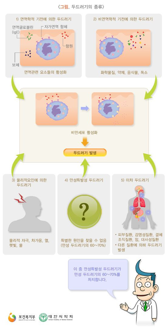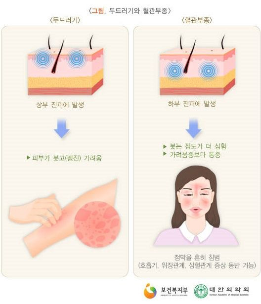 3) 피부 혈관에서 히스타민 같은 물질이 과도하게 분비되면서 발생하는 알레르기 반응