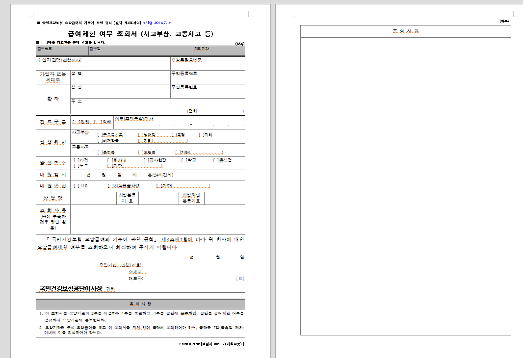 [별지 제2호서식] 급여제한 여부 조회서 (사고부상¸ 교통사고 등)(국민건강보험 요양급여의 기준에 관한 규칙).hwp