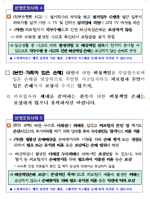 | ◈누수 등 주택으로 인해 발생하는 손해, 가족․반려견이 타인 등에 끼친 손해 등 일상생활에서 발생할 수 있는 다양한 배상책임을 보상합니다. |