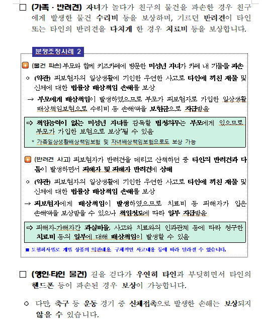 | [금융꿀팁] <153> 일상생활배상책임보험 가입시 알아야 할 유익정보 및 분쟁조정사례를 알려드립니다. |