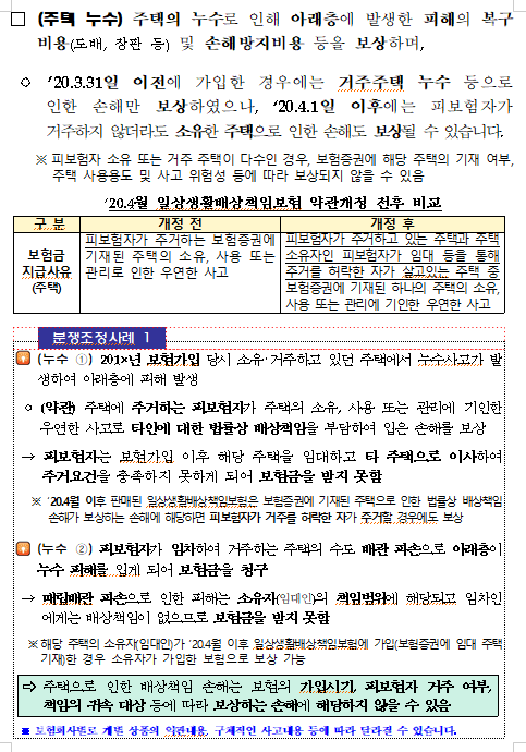 * 신규로 주택을 매입(소유권 취득)하여 타인에게 임대한 경우, ’20.4.1. 이후 가입 보험으로는 보상가능하나 ’20.3.31. 이전 가입 보험으로는 보상 불가능