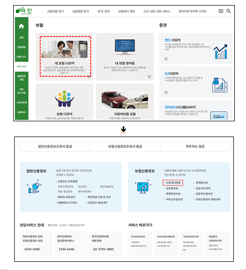 □ 금융감독원 금융소비자정보 포털사이트 「파인」(http://fine.fss.or.kr) “내 보험 다보여” 메뉴에서 보험 가입 여부를 확인할 수 있습니다.