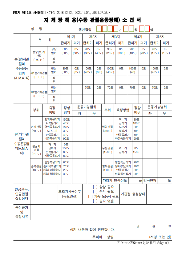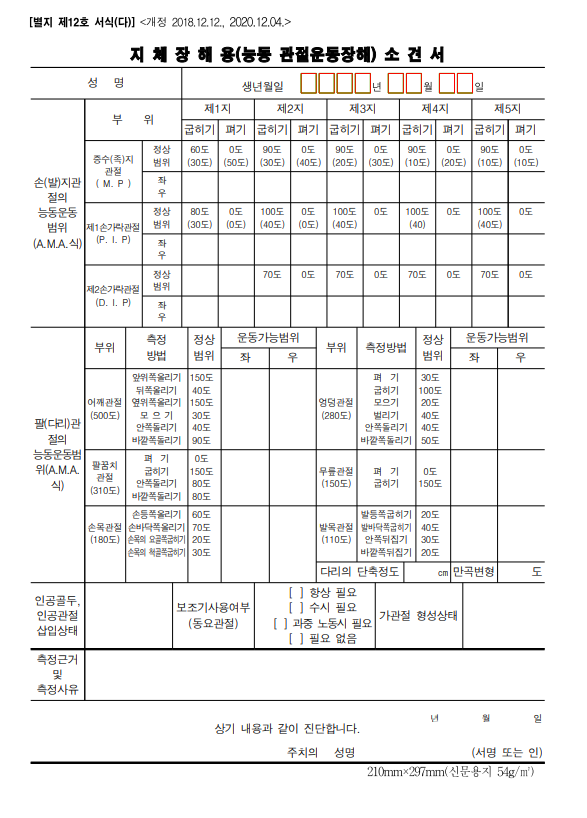 4. 지체장해용[수동 관절운동장해]소견서