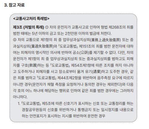 3)예외사유에 해당하지 아니하는 한, 자동차종합보험에 가입한 경우에는 그 자체로 형사처벌 이 면제되므로 일반적으로 별도의 형사합의가 필요 없는데 반해, 자동차종합보험을 들지 * 신호위반, 중앙선 침범, 과속, 무면허 운전, 음주운전, 횡단보도, 앞지르기 방법 위반, 보도 침범, 철길건널목 통과방법 위반, 승객추락 방지의무 위반, 어린이보호구역, 화물낙하방지 위반 ** 피해자가 신체의 상해로 인하여 생명에 대한 위험이 발생하거나 불구가 되거나 불치 또는 난치의 질병이 생긴 경우 않은 경우에는 피해자가 가해자의 형사처벌을 원하지 않는다는 확인서를 경찰서에 제출하여 야 형사처벌이 면제된다는 점에서 그 대가로 형사합의금을 지급하는 경우가 많습니다. 이 경우 자동차종합보험이 없으므로 민사상 손해배상금도 포함해서 합의하는 것이 일반적 이지만, 피해자가 무보험차상해보험 등으로 처리받을 수 있는 경우에는 민사상 손해배상금 과 별도로 하기도 합니다. 이 때에는 무보험차상해보험금을 지급한 보험회사에서 추후에 가해자에게 그 금액을 구상청구하기 때문입니다.