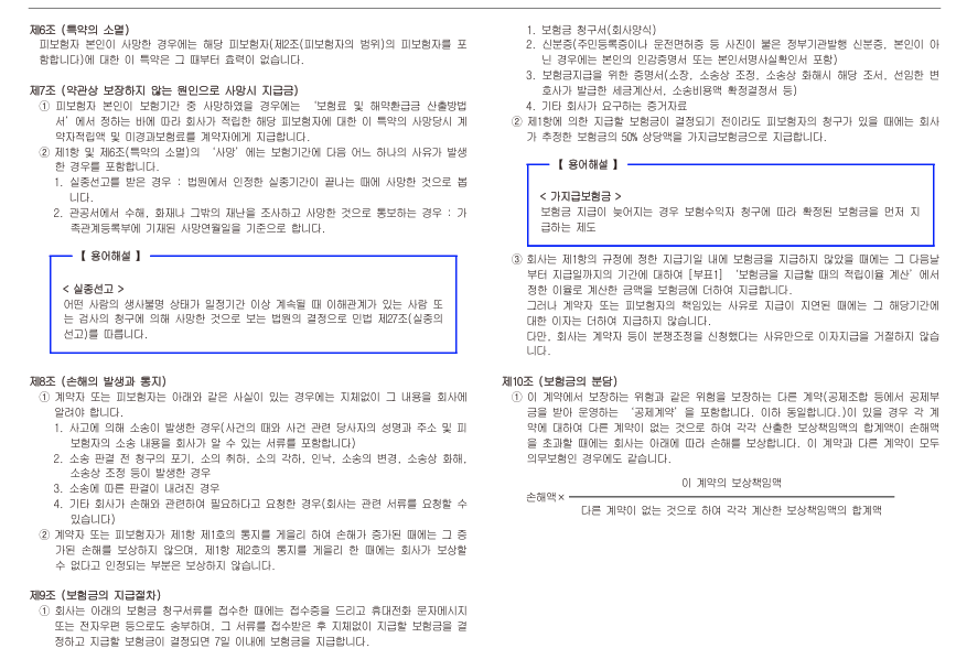 ② 위 제1항에서 피보험자 본인과 본인 이외의 피보험자의 관계는 사고 발생 당시의 관계를 말합니다.