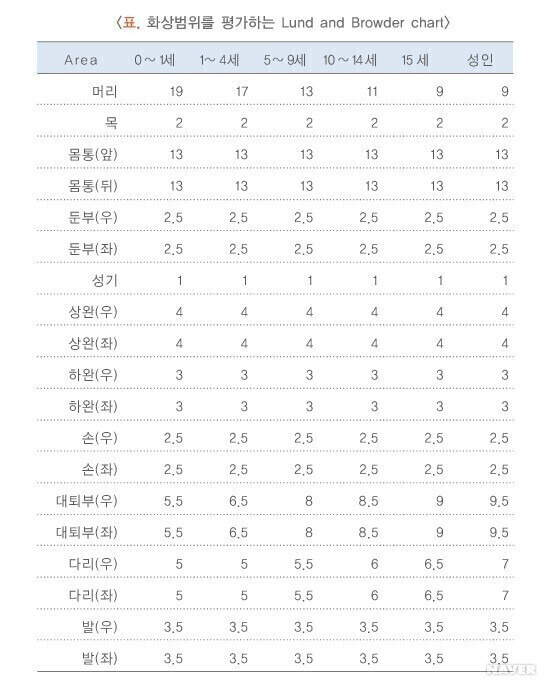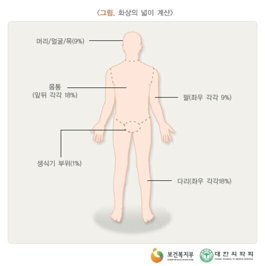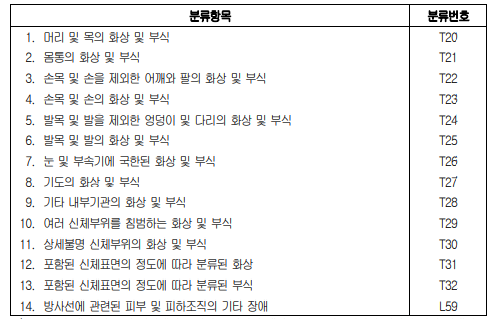 중대 화상·부식의 정의 및 진단확정[최소 20% 이상의 3도 화상 또는 부식(화학약품 등에 의한 피부손상)을 입은 경우]