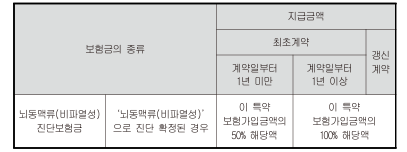 회사는 피보험자가 이 특별약관의 보험기간 중에 ‘뇌동맥류(비파열성)’으로 진단 확정된 경우에 최초 1회에 한하여 아래의 금액을 뇌동맥류(비파열성) 진단비로 보험수익자에게 보험금으로 지급합니다.(이하 ‘특별약관'은 ‘특약', ‘이 특별약관의 보험기간'은 ‘보험기 간'이라 합니다)