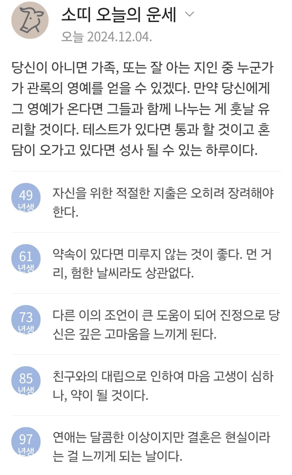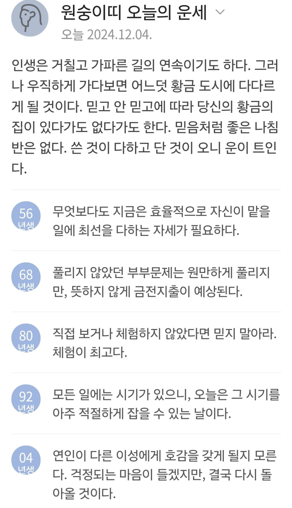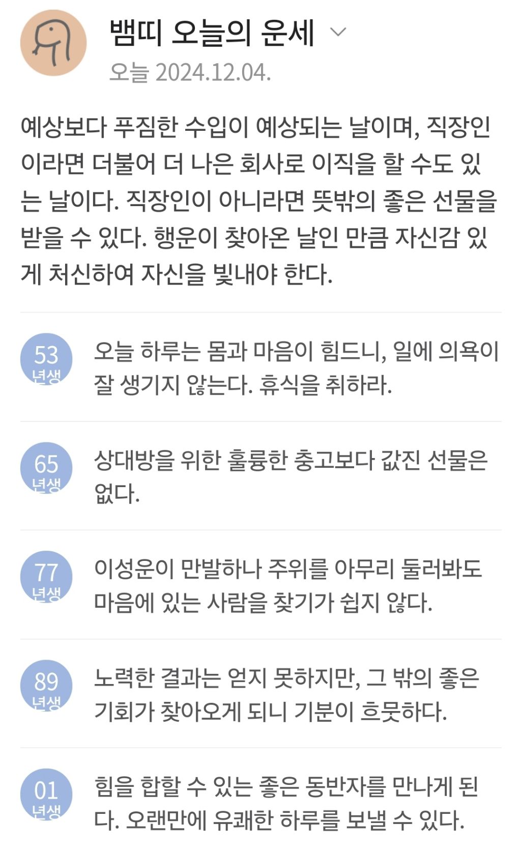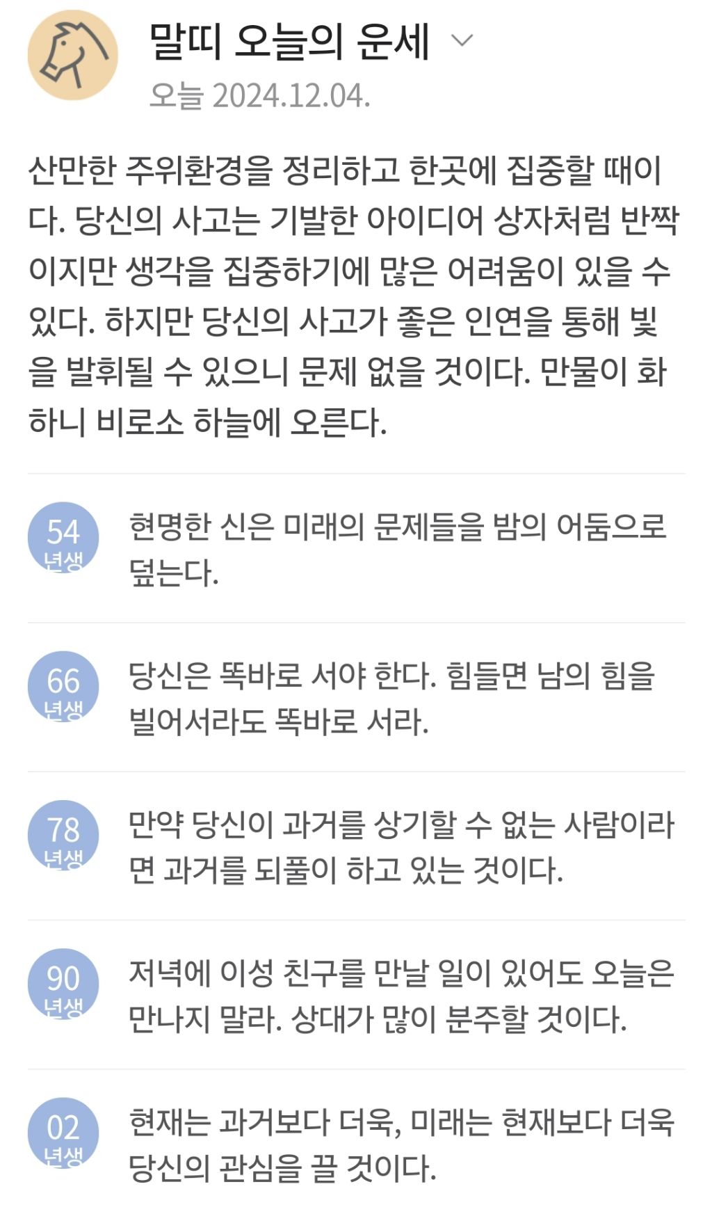 오늘운세 작성자행복한오드리|작성시간24.12.04|조회수28 목록 댓글 5 글자크기 작게가 글자크기 크게가 다음검색 현재 게시글 추가 기능 열기 북마크 공유하기 신고 센터로 신고 댓글 댓글 5 댓글쓰기 답글쓰기 댓글 리스트 작성자최준호 | 작성시간 24.12.04 경청 작성자최준호 | 작성시간 24.12.04 소통 작성자최준호 | 작성시간 24.12.04 협업 작성자최준호 | 작성시간 24.12.04 할수있다 작성자최준호 | 작성시간 24.12.04 하면된다 댓글 전체보기