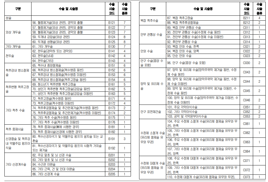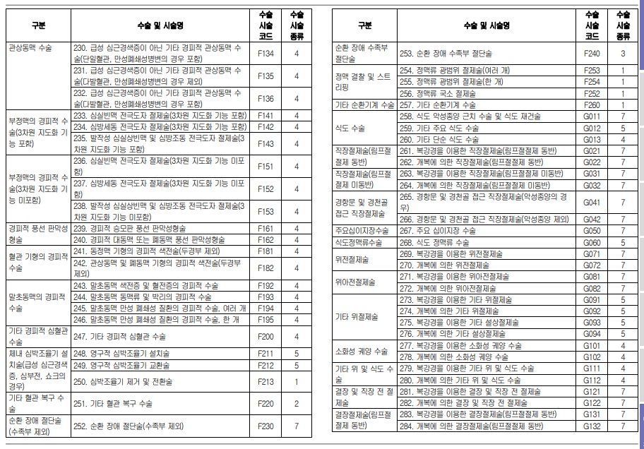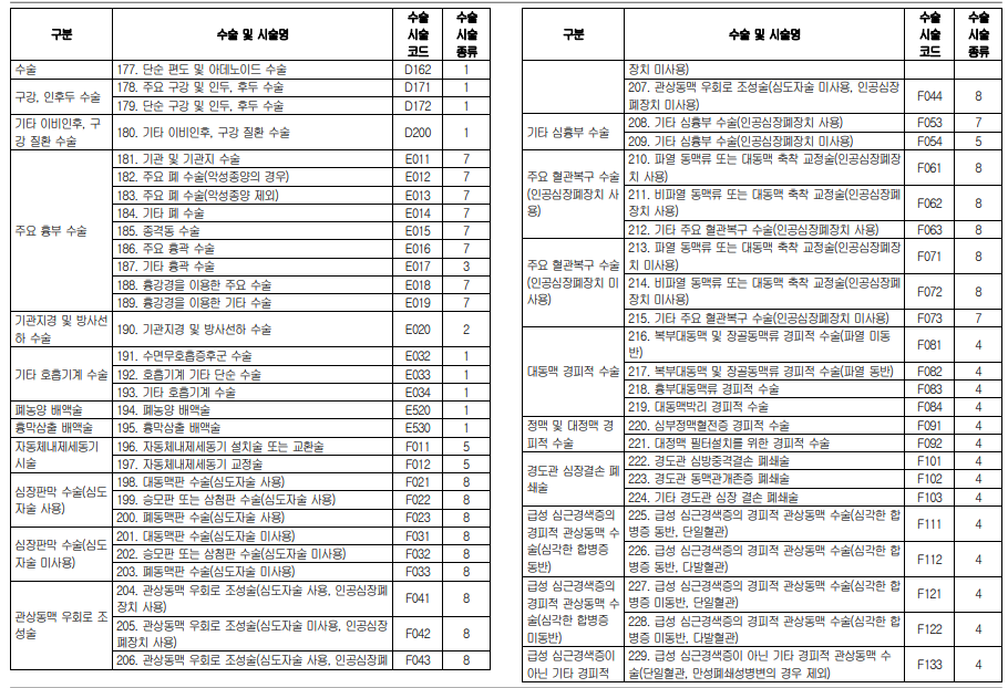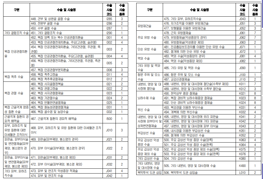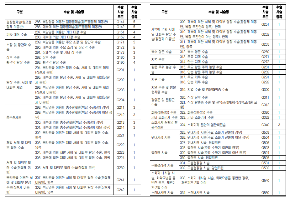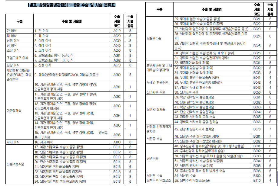 [별표-상해 및 질병관련2] 1~8종 수술 및 시술 분류표