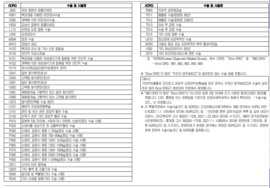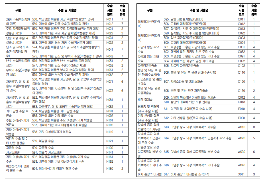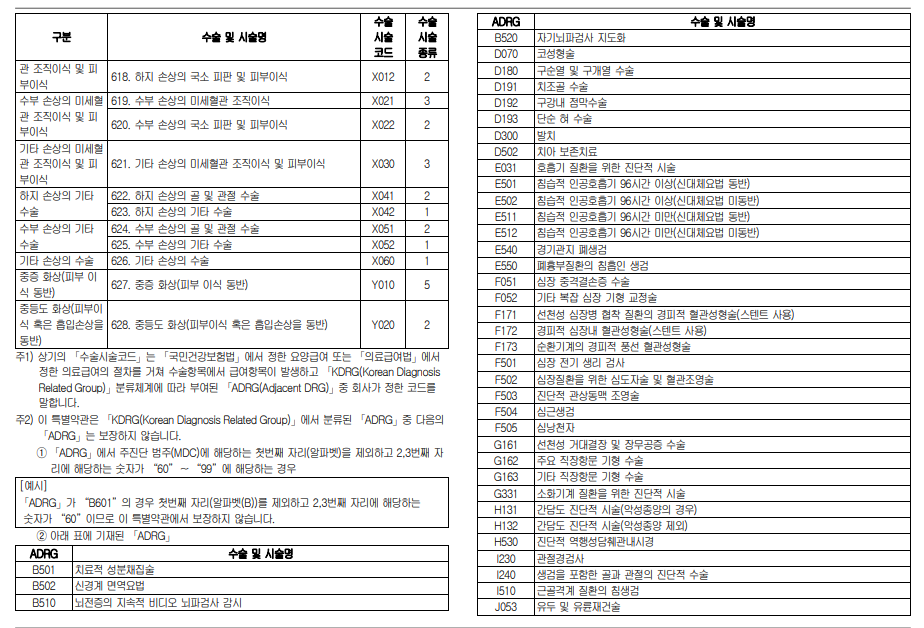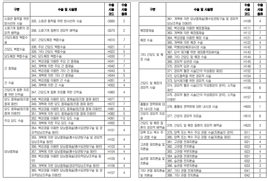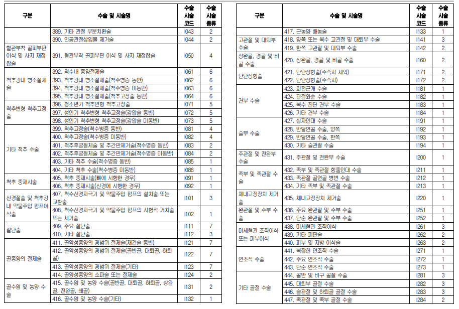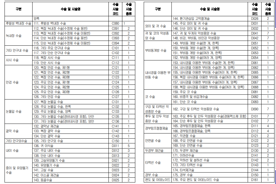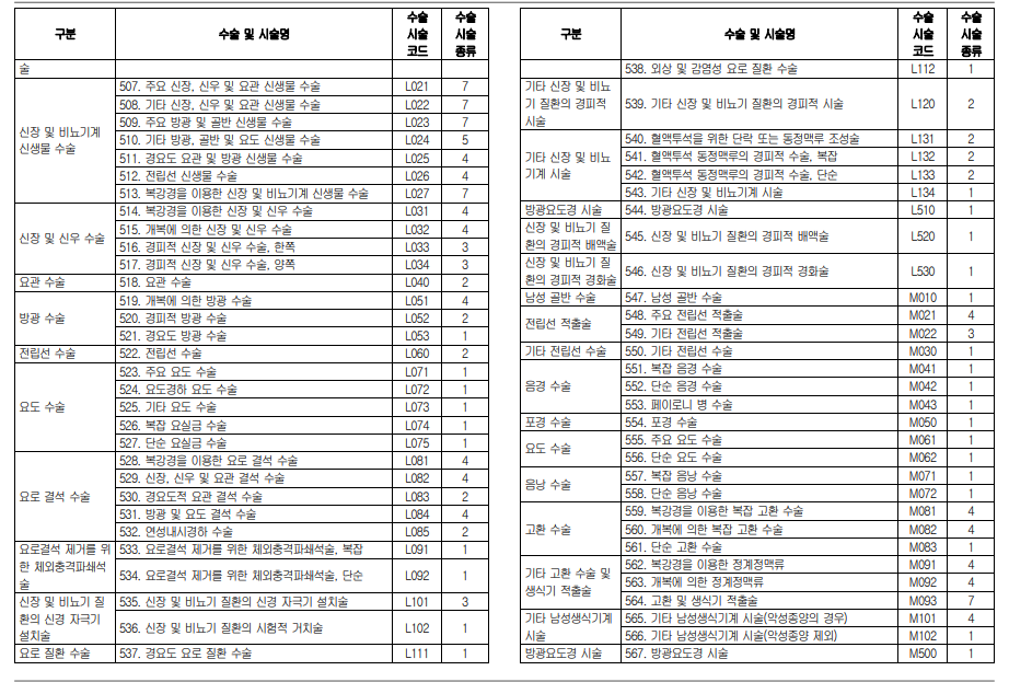 [별표-상해 및 질병관련2] 1~8종 수술 및 시술 분류표
