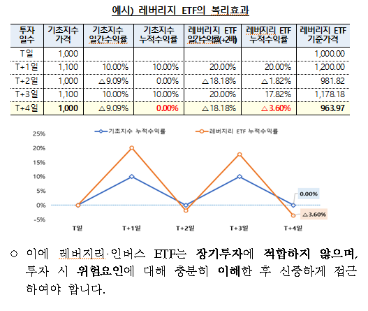 해외 레버리지·인버스 ETF는 복리효과로 인해 장기투자에 적합하지 않습니다. |