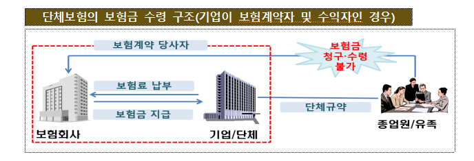 * 보험계약자와 피보험자의 근로관계와 무관한 상품은 적용대상이 아니며, 사망담보 이외의 담보는 현행과 같이 기업이 보험수익자로 지정 가능