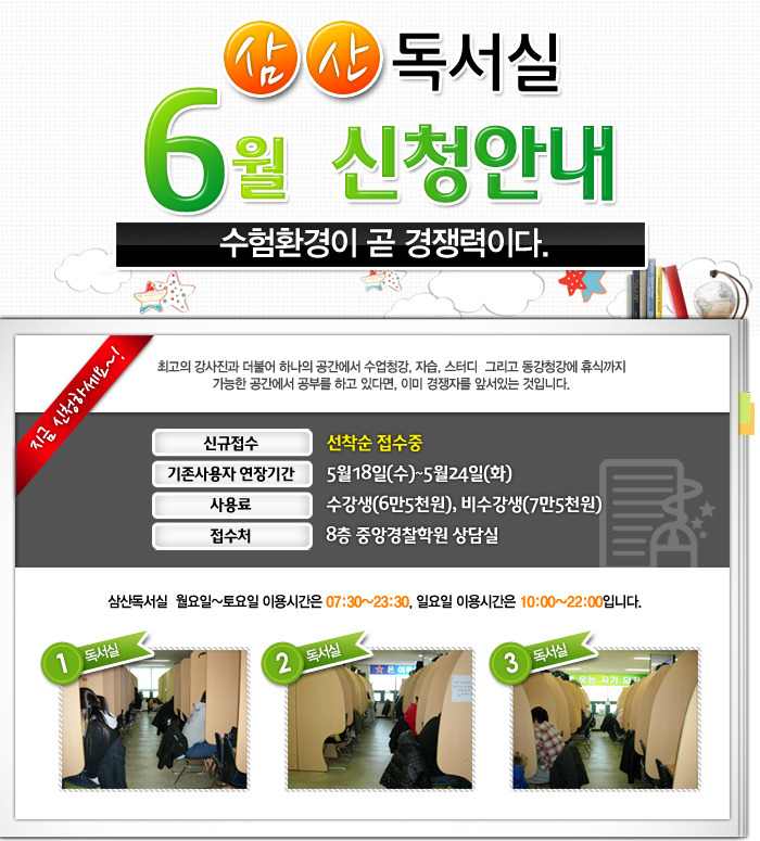 [울산독서실][삼산독서실][울산달동독서실] 6월 신청안내 작성자울산중앙경찰학원|작성시간16.05.13|조회수76 목록 댓글 0 글자크기 작게가 글자크기 크게가 울산에서 공부하기 좋은 독서실!쾌적한 환경의 독서실을 이용하고 싶으시다면울산 달동 현대해상 사거리에 위치한삼산독서실 !![울산독서실][삼산독서실][울산달동독서실] 다음검색 현재 게시글 추가 기능 열기 북마크 공유하기 신고 센터로 신고 댓글 댓글 0 댓글쓰기 답글쓰기 댓글 리스트