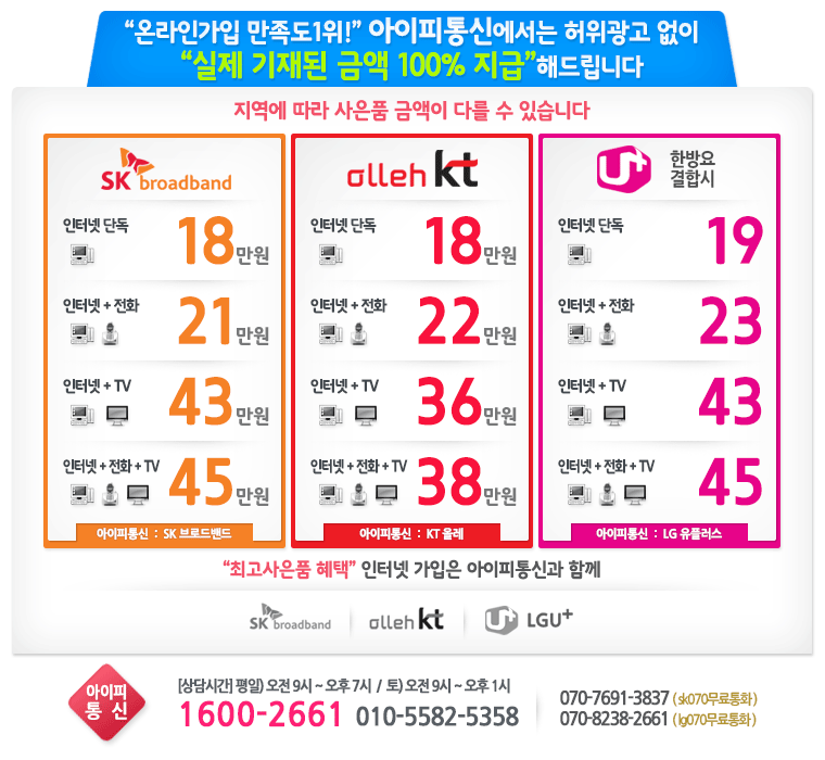 동일한 가격으로 인터넷 설치를 하는데 이왕이면 더 좋은 조건으로 하시는게 좋겠죠? ^^