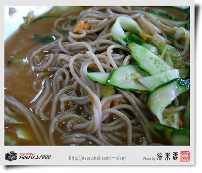 잠시후 닭고기와 야채를 골라먹은후 육수에 넣어먹는 메밀면이 나왔다.