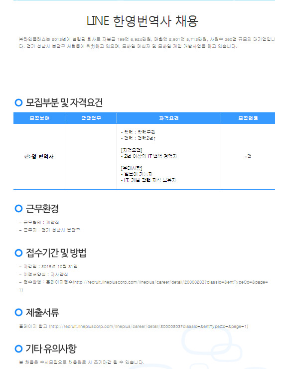 LINE 한영번역사 채용 (~10.31) 작성자작은아씨|작성시간15.09.26|조회수443 목록 댓글 0 글자크기 작게가 글자크기 크게가 http://www.jobkorea.co.kr/Recruit/GI_Read/14822012?Oem_Code=C1&rPageCode=PL 다음검색 현재 게시글 추가 기능 열기 북마크 공유하기 신고 센터로 신고 댓글 댓글 0 댓글쓰기 답글쓰기 댓글 리스트