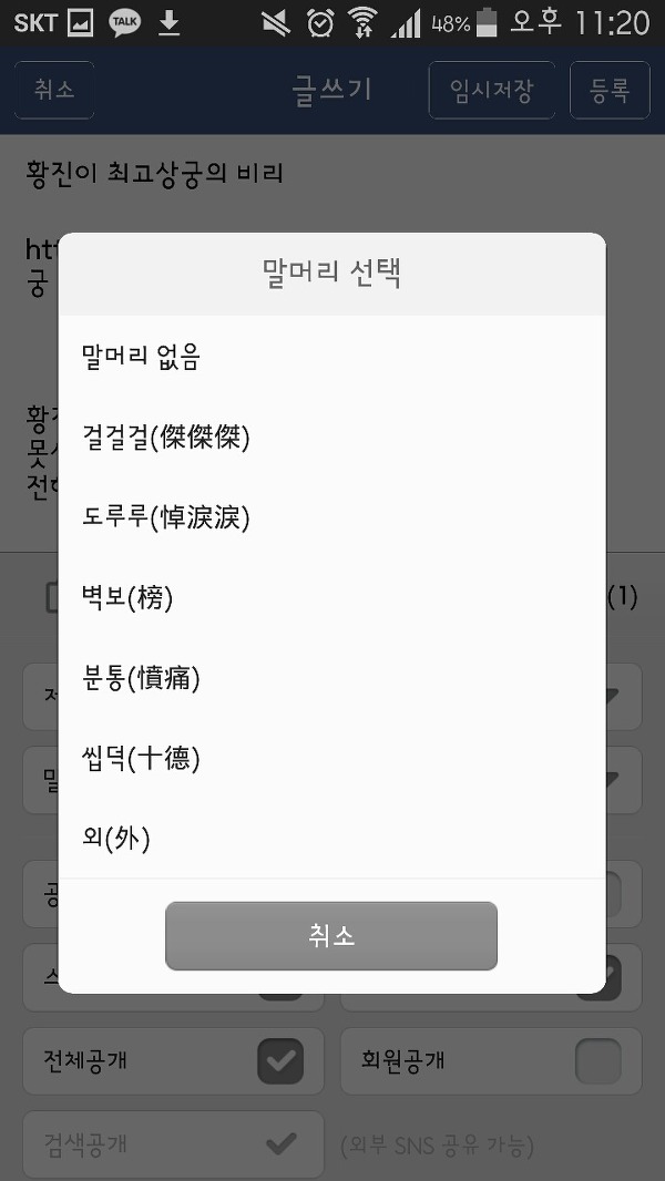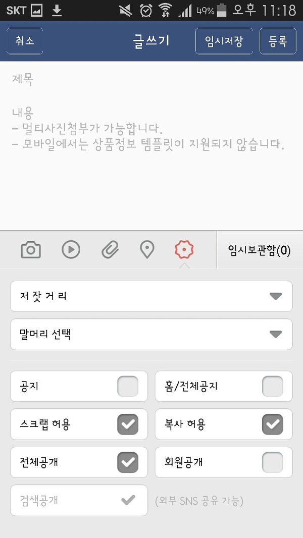 제목을 설정하여 작성한 후 내용을 누른다음 꾹 눌러서 붙여넣기를 해주시오.