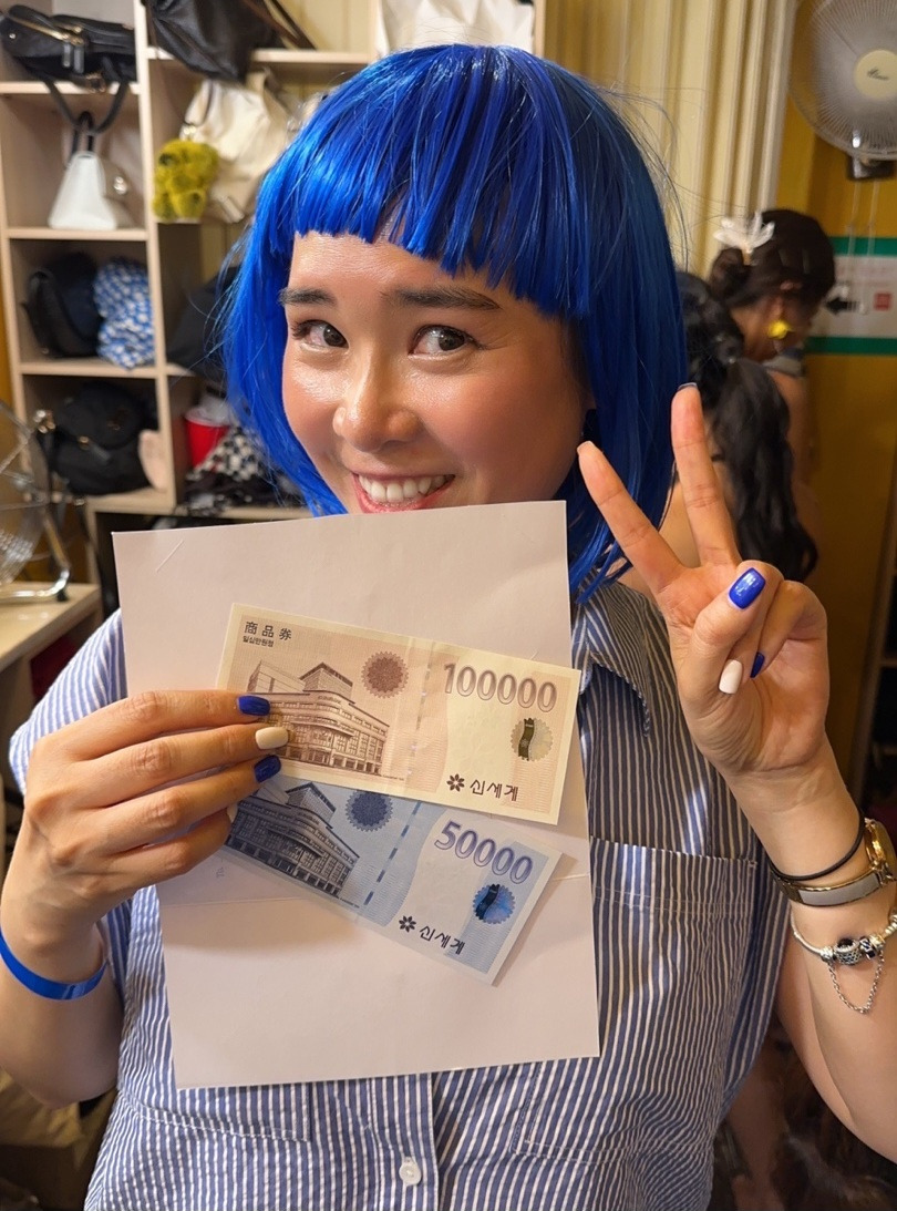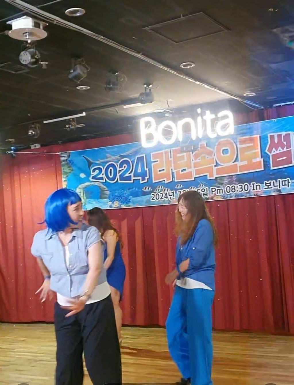 저는 어차피 남들 눈에 띄게 가발도 썼는데 한번 나가보자 하며 동기 친구와 용기내어 앞으로 나갔습니다.