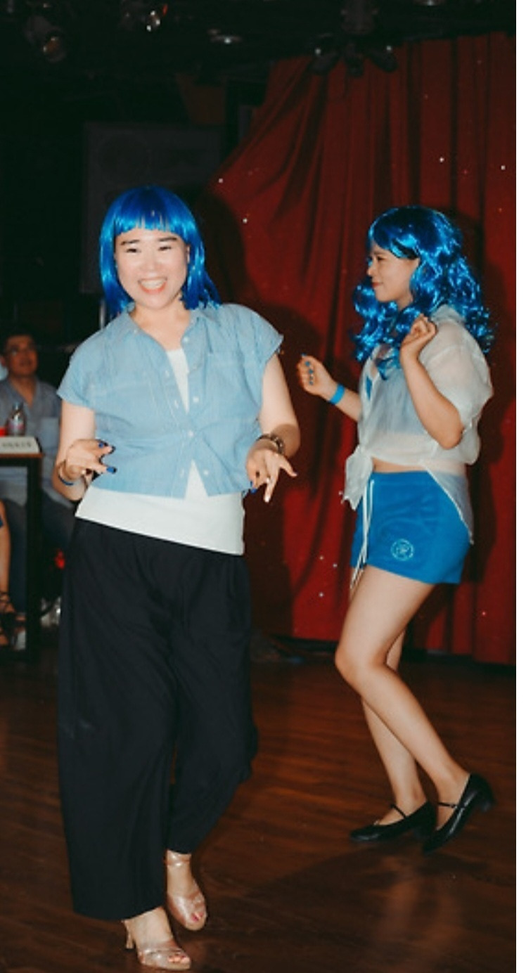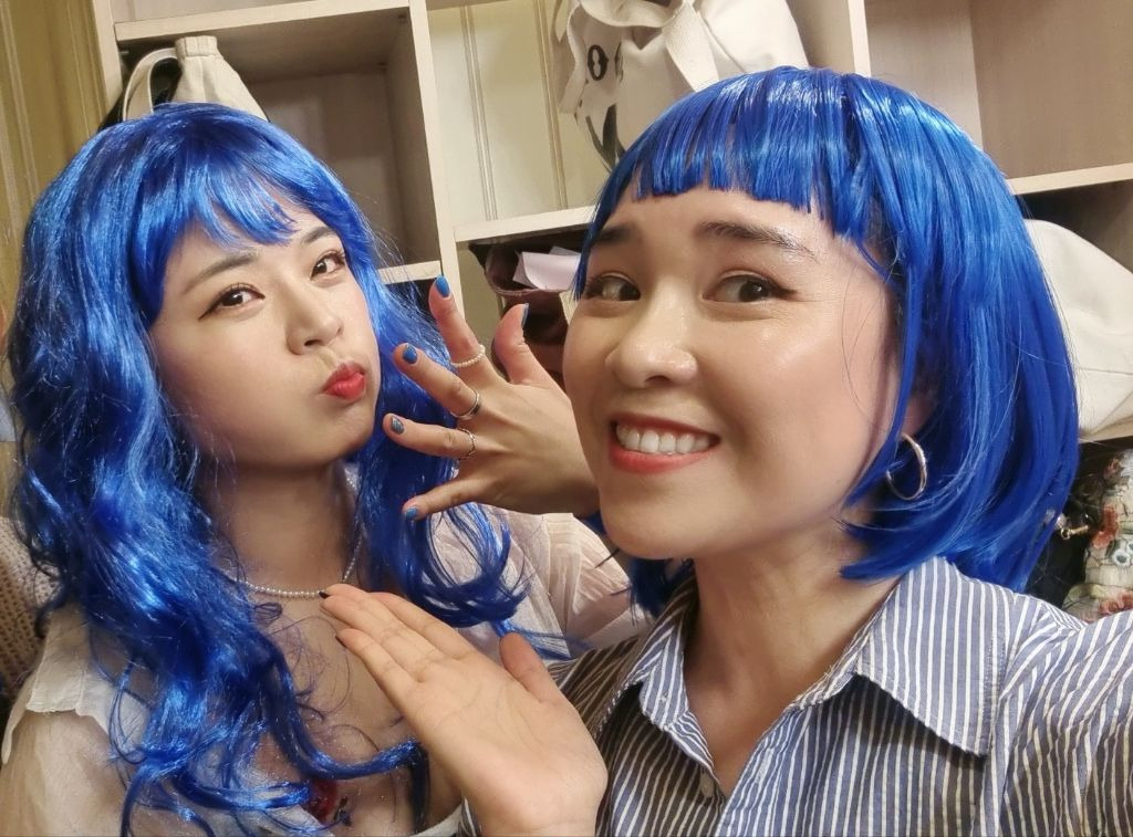 그런데 홍대 보니따 살사바에는 7월에 '썸머파티'가 있더라고요. 많은 사람들이 함께 음식도 먹으며 춤도 추는 이벤트 날이었습니다. 이날 드레스코드는 '블루' 였고, 가장 멋진 드레스코드에 맞게 옷을 입은 사람에겐 상금도 준다고 하더라고요. 저도 동기 친구 한 명과 재미있게 참여하고 싶어서 쿠땡에서 파란 가발을 골라보았습니다.
