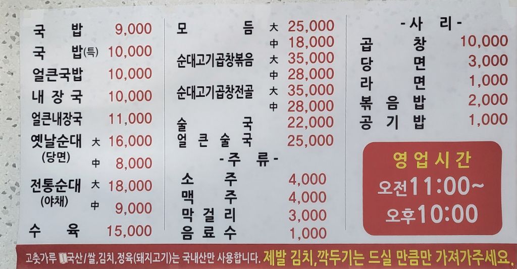 그래서 주문을 했습니다. 순대국 1인분씩!