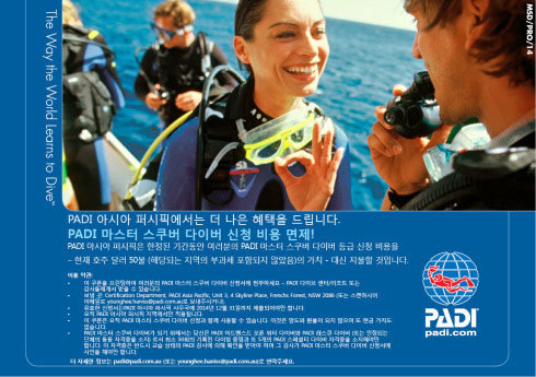 2014년 PADI 의 마스터스쿠버 다이버 신청비가 면제 됩니다.