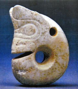 | |  | | | ▲ 우하량 제2지점 1호묘에서 출토된 곰 머리에 용의 형상인 옥웅룡 옥기. |