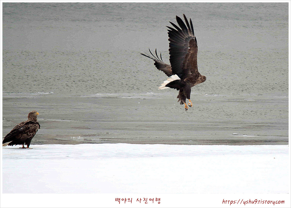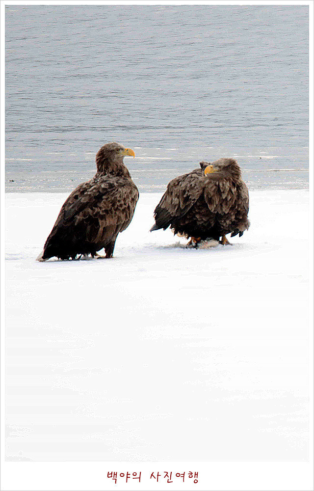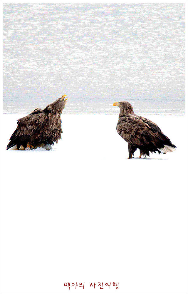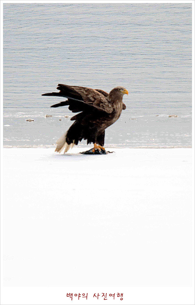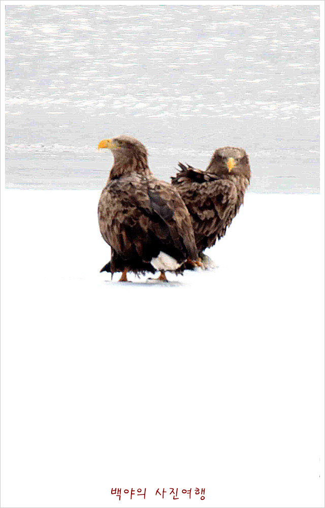 눈위에서 멋진 연출을기대하며 흰꼬리수리 사냥터에 도착