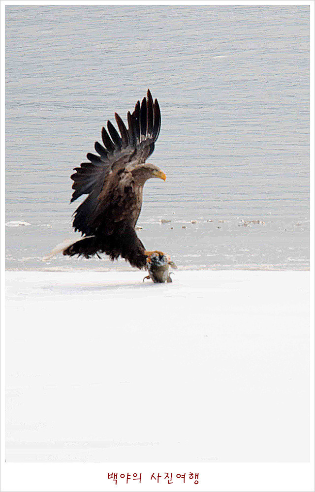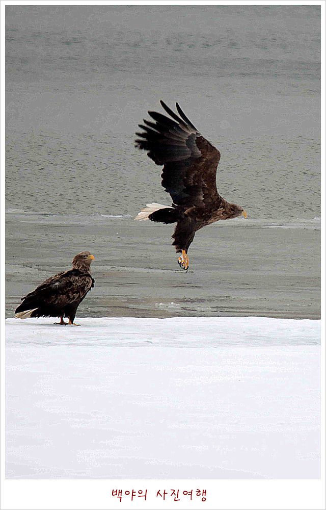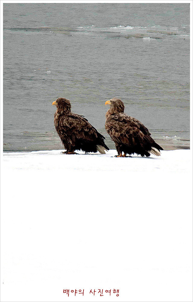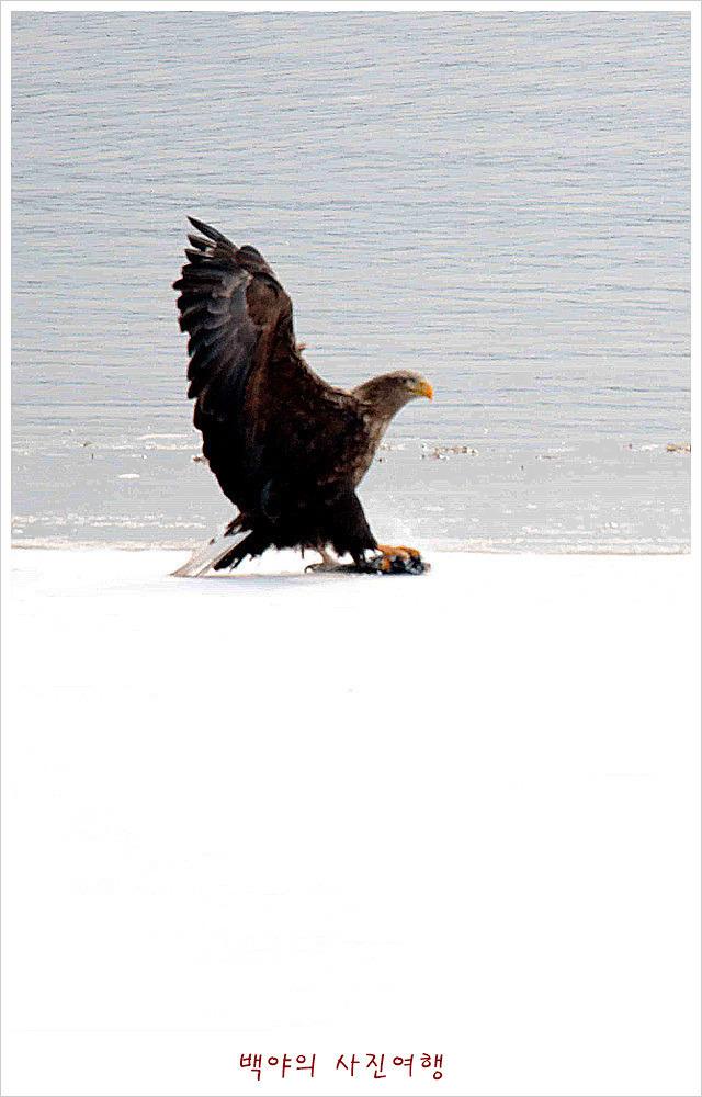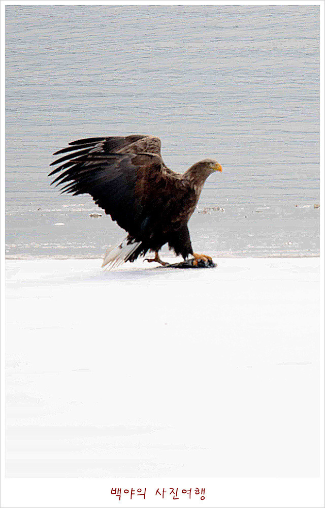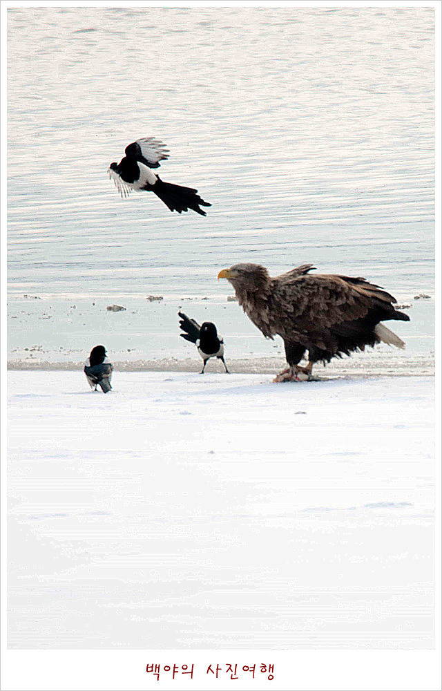 눈위에서 멋진 연출을기대하며 흰꼬리수리 사냥터에 도착