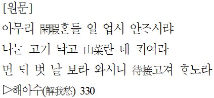 먼 데 벗 날 보러 왔으니 대접코자 하노라
