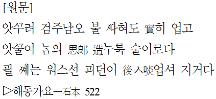 앗구려 남의 사랑 조누룩 술이로다
